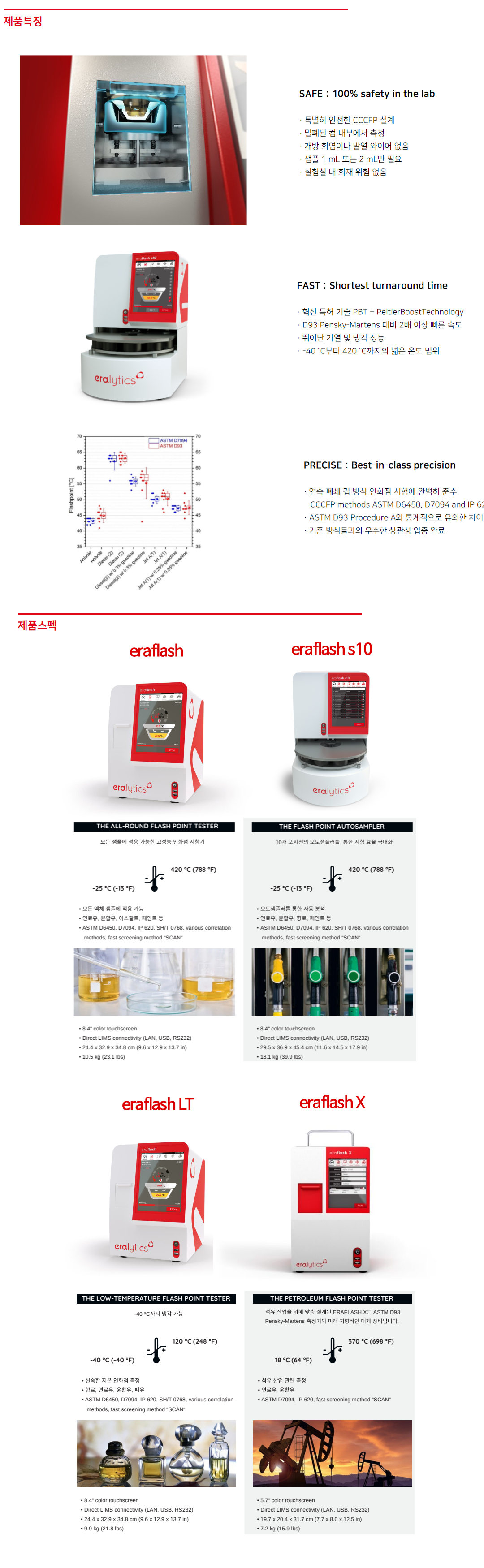 Eralytics사의 eraflash series 제품은 ASTM D7094 기반의 가장 안전하고 빠르고 정확한 인화점 시험기입니다.