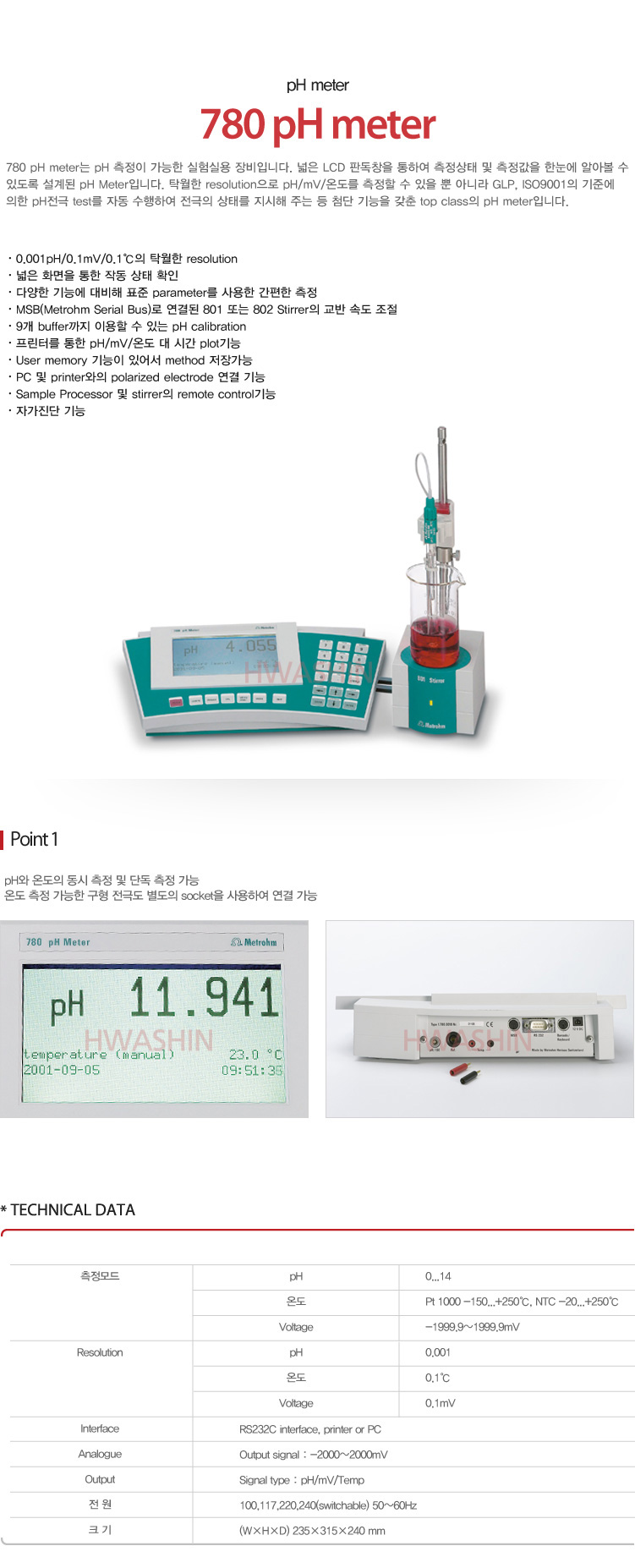 [pH&Ions&DO&전도도측정기] 780 pH meter 780 pH meter는 pH 및 이온농도 측정이 가능한 실험실용 장비입니다. 메이커 : Metrohm 카달로그 및 제품 문의는 아래 메일로 연락을 주시기 바랍니다. 고객센터 : 1644-2519 info@hwashinbs.com 이전글 867 pH module 다음글 781 pH & Ion meter 목록 본문 이전글 867 pH module 다음글 781 pH & Ion meter 목록