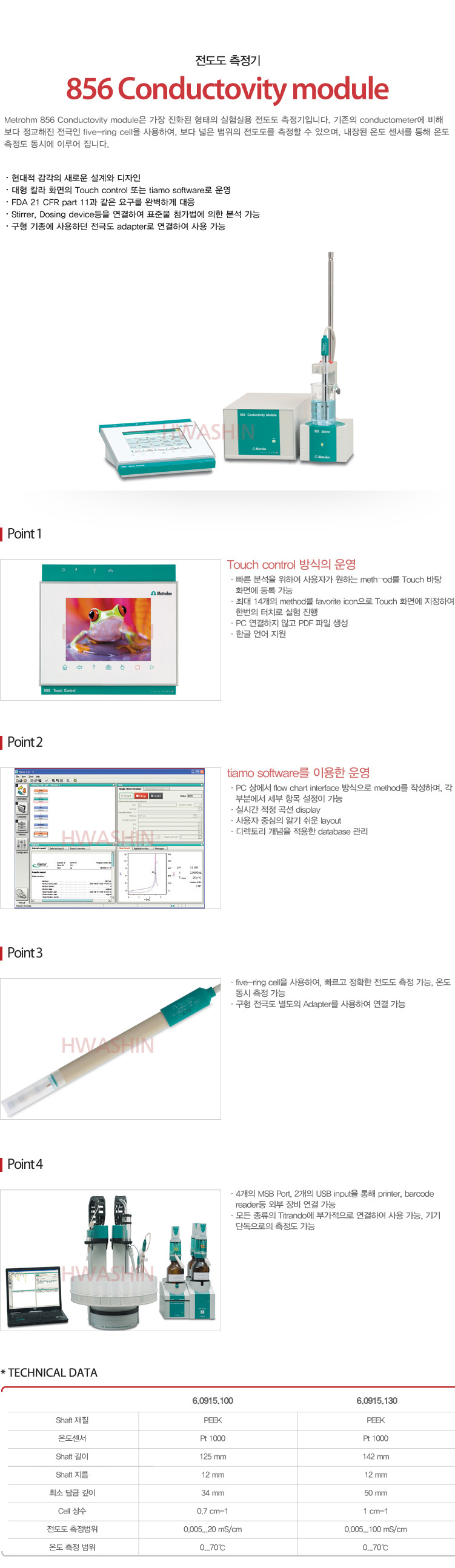 [pH&Ions&DO&전도도측정기] 856 Conductivity module Metrohm 856 Conductivity module은 가장 진화된 형태의 실험실용 전도도 측정기입니다. 메이커 : Metrohm 카달로그 및 제품 문의는 아래 메일로 연락을 주시기 바랍니다. 고객센터 : 1644-2519 info@hwashinbs.com 이전글 912 913 914 pH & Conductometer 다음글 867 pH module 목록 본문 이전글 912 913 914 pH & Conductometer 다음글 867 pH module 목록