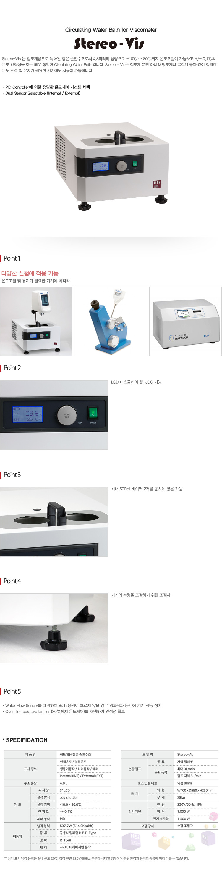 [] Stereo Vis Stereo-Vis 는 점도계용으로 특화된 항온 순환수조로써 4.8리터의 용량으로 -10℃ ~ 80℃까지 온도조절이 가능하고 +/- 0.1℃의 온도 안정성을 갖는 매우 정밀한 Circulating Water Bath 입니다. 정밀한 온도 조절 및 유지가 필요한 기기에도 사용이 가능합니다. 이전글 Stereo 100 다음글 Roller Moxer(205RM/208RM/210RM) 목록 본문 이전글 Stereo 100 다음글 Roller Moxer(205RM/208RM/210RM) 목록
