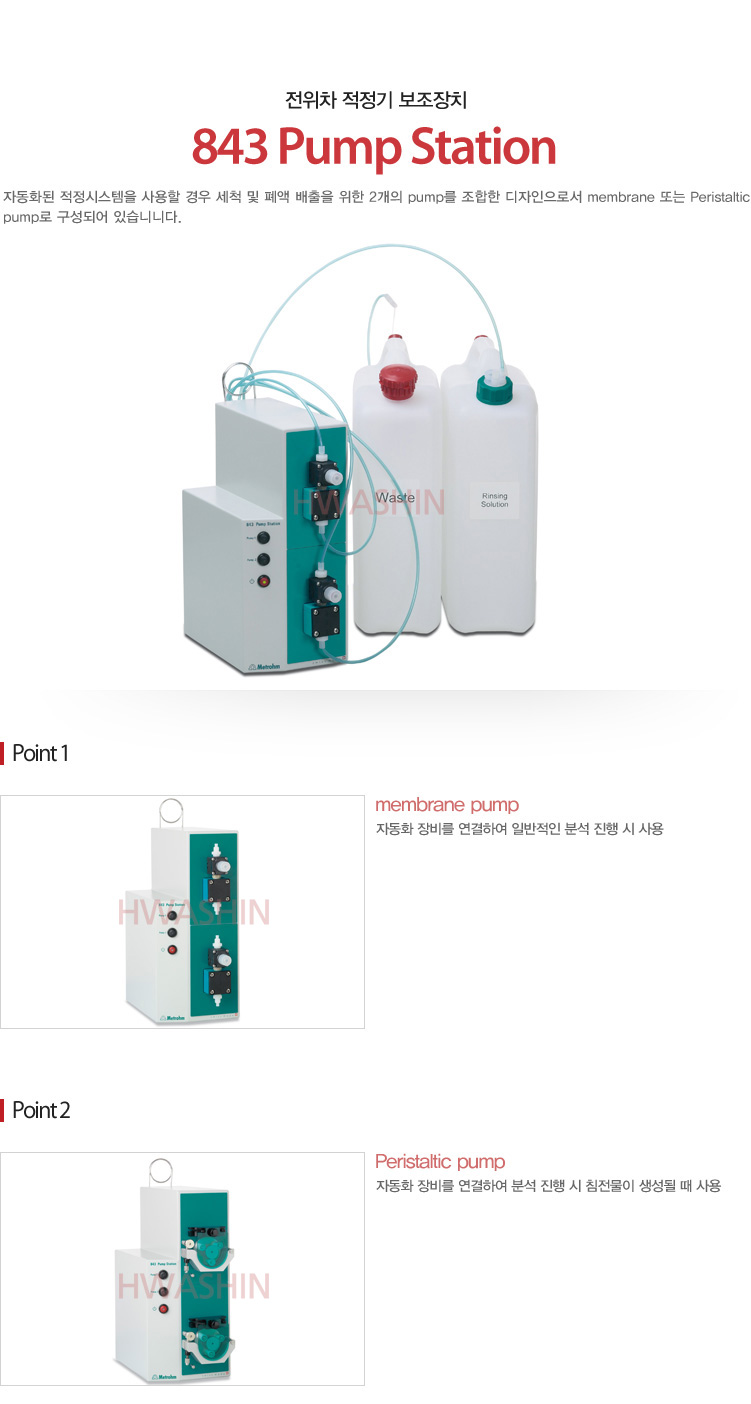 [전위차적정기] [Metrohm] 843 Pump Station 자동화된 적정시스템을 사용할 경우 세척 및 폐액 배출을 위한 2개의 pump를 조합한 디자인으로서 membrane 또는 Peristaltic pump로 구성되어 있습니니다. 카달로그 및 제품 문의는 아래 메일로 연락을 주시기 바랍니다. 고객센터 : 1644-2519 info@hwashinbs.com 이전글 [Metrohm] 846 Dosing interface 다음글 [Metrohm] 786 Swing Head 목록 본문 이전글 [Metrohm] 846 Dosing interface 다음글 [Metrohm] 786 Swing Head 목록