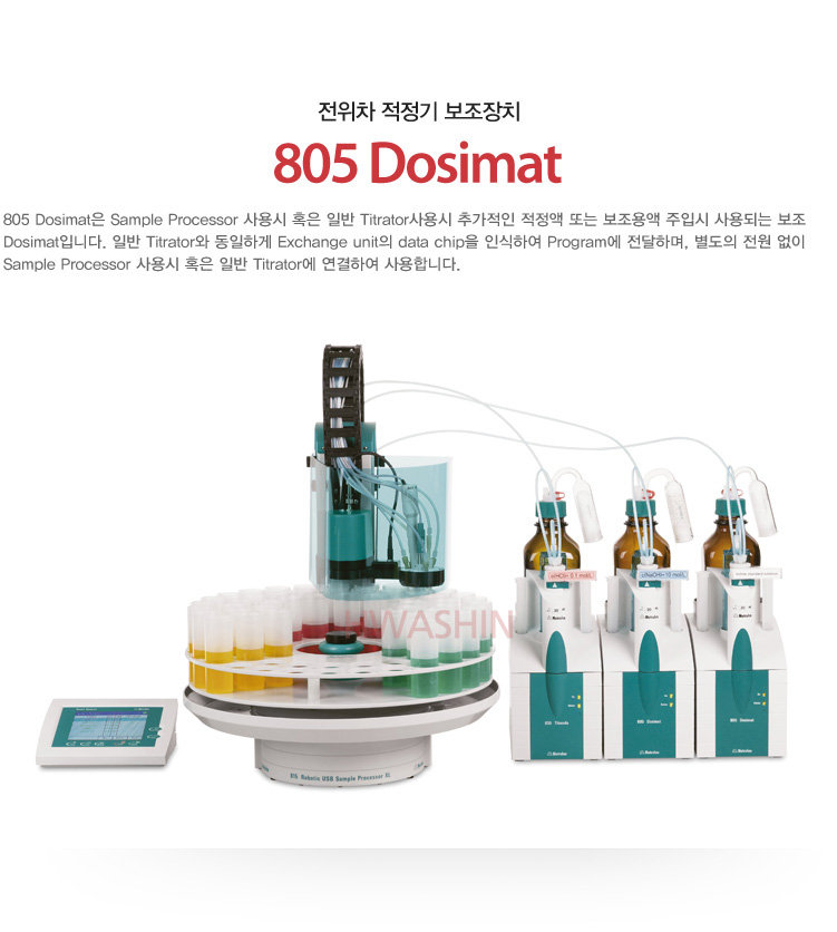 [전위차적정기] [Metrohm] Dosimat plus805 Dosimat 805 Dosimat은 Sample Processor 사용시 혹은 일반 Titrator사용시 추가적인 적정액 또는 보조용액 주입시 사용되는 보조 Dosimat입니다. 카달로그 및 제품 문의는 아래 메일로 연락을 주시기 바랍니다. 고객센터 : 1644-2519 info@hwashinbs.com 이전글 [Metrohm] 865 / 876 Dosimat plus 다음글 [Metrohm] 846 Dosing interface 목록 본문 이전글 [Metrohm] 865 / 876 Dosimat plus 다음글 [Metrohm] 846 Dosing interface 목록