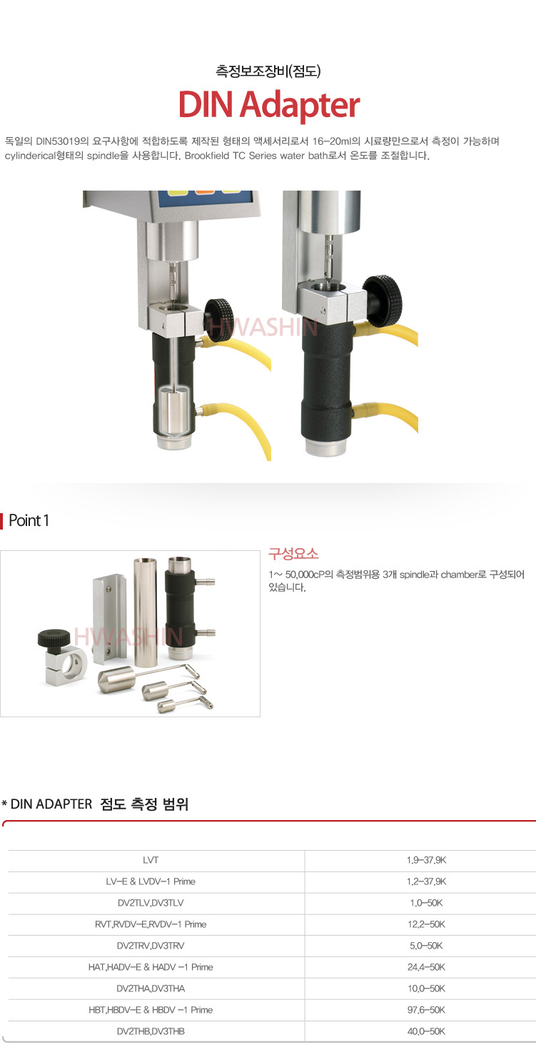 독일의 DIN53019의 요구사항에 적합하도록 제작된 형태의 액세서리로서 16-20ml의 시료량만으로서 측정이 가능하며 cylinderical형태의 spindle을 사용합니다. Brookfield TC Series water bath 또는 Stereo-vis bath 를 통해 온도를 조절 /유지 할 수 있습니다.
