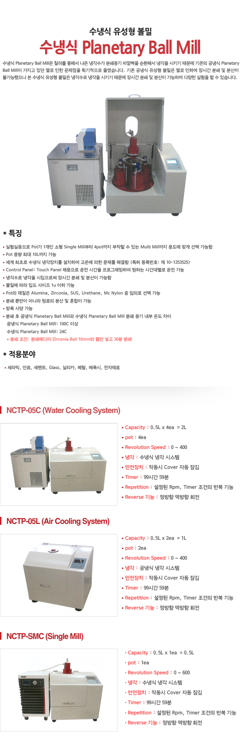 [세라믹제품] 수냉식 Planetary Ball Mill 기존 공냉식 유성형 볼밀은 열로 인하여 장시간 분쇄 및 분산이 불가능했으나 본 수냉식 유성형 볼밀은 냉각수로 냉각을 시키기 때문에 장시간 분쇄 및 분산이 가능하여 다양한 실험을 할 수 있습니다. 메이커 : KOREA 카달로그 및 제품 문의는 아래 메일로 연락을 주시기 바랍니다. 고객센터 : 1644-2519 info@hwashinbs.com 이전글 NIKKATO 여과관, 격막, 세라믹스필터 다음글 Model Fx 목록 본문 이전글 NIKKATO 여과관, 격막, 세라믹스필터 다음글 Model Fx 목록