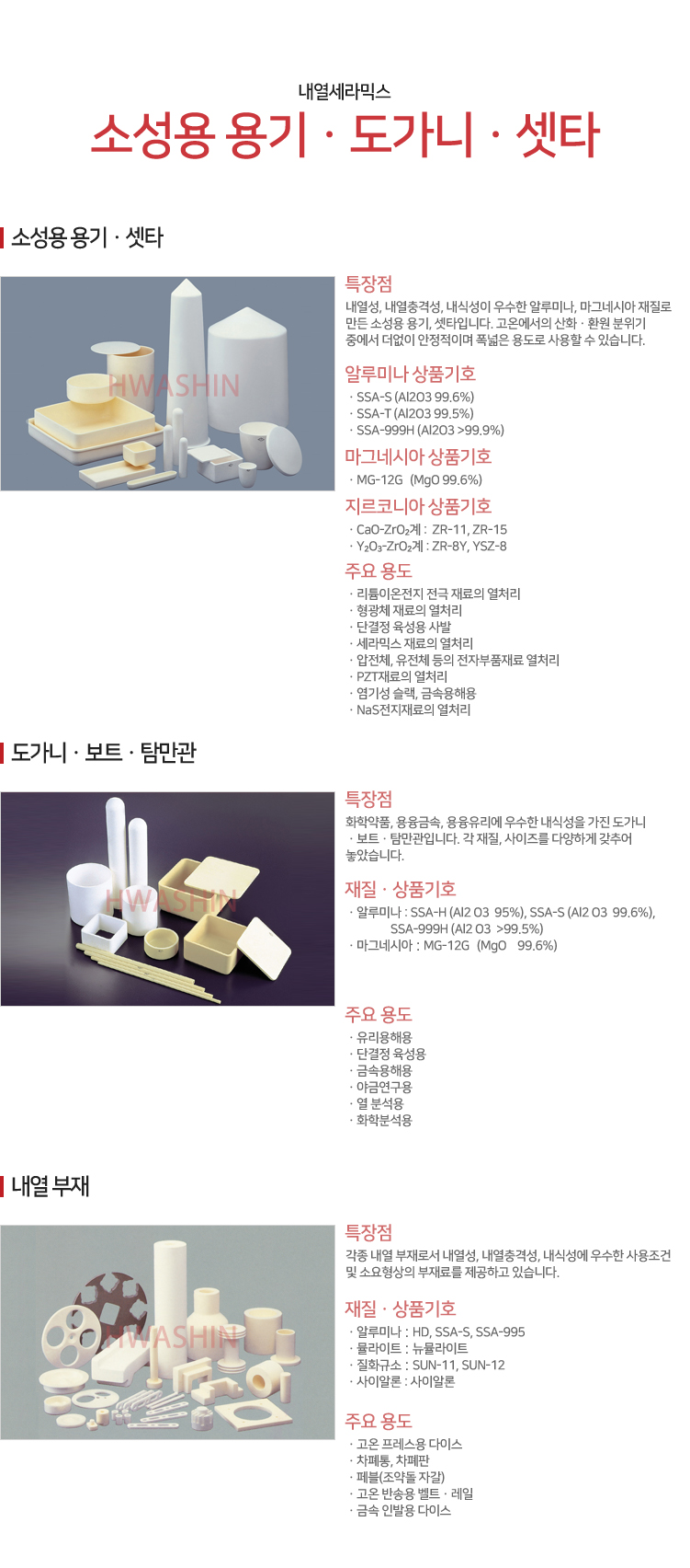 [세라믹제품] 소성용 용기ㆍ도가니ㆍ셋타 소성용 용기ㆍ셋타, 도가니ㆍ보트ㆍ탐만관, 내열 부재 메이커 : NIKKATO 카달로그 및 제품 문의는 아래 메일로 연락을 주시기 바랍니다. 고객센터 : 1644-2519 info@hwashinbs.com 이전글 세라믹, 이화학용자기, 증발접시, 도가니, 탐만관, 막자사발, 유봉, 흡수판, 보트, 휘발분측정용도가니 다음글 내화도가니ㆍ특수내화물ㆍ내화단열시멘트 목록 본문 이전글 세라믹, 이화학용자기, 증발접시, 도가니, 탐만관, 막자사발, 유봉, 흡수판, 보트, 휘발분측정용도가니 다음글 내화도가니ㆍ특수내화물ㆍ내화단열시멘트 목록