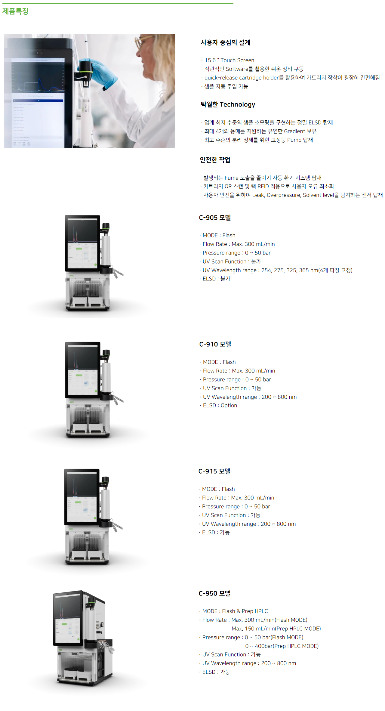 모델은 크게 Medium Pressure로 물질을 분리하는 MPLC만 가능한 모델과