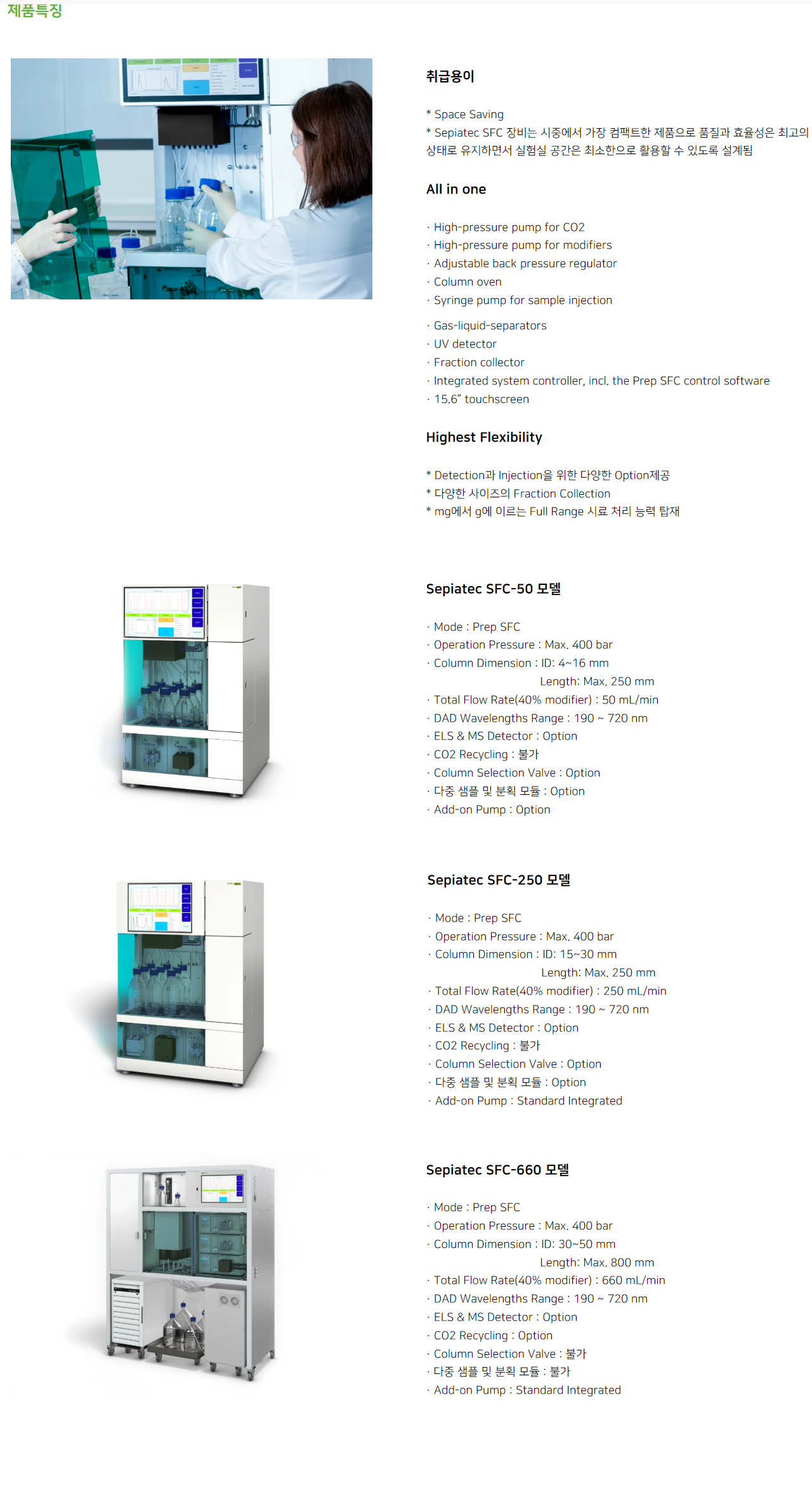 Sepiatec SFC 시스템은 초임계유체 분취 크로마토그래피 제품으로