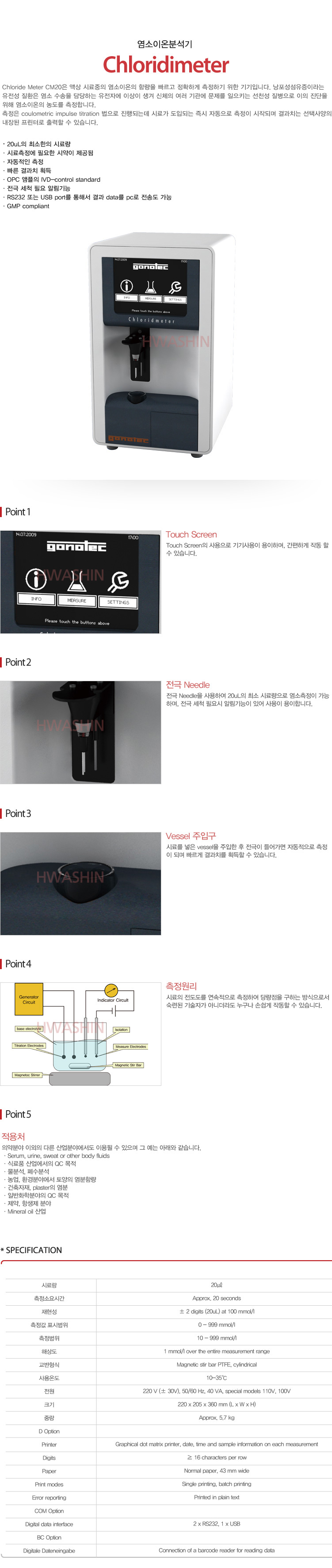 [삼투압측정기] Chloridimeter Chloride Meter CM20은 액상 시료중의 염소이온의 함량을 빠르고 정확하게 측정하기 위한 기기입니다. 메이커 : Gonotec 카달로그 및 제품 문의는 아래 메일로 연락을 주시기 바랍니다. 고객센터 : 1644-2519 info@hwashinbs.com 이전글 Osmomat Auto 다음글 Hamilton Microliter Syringe 목록 본문 이전글 Osmomat Auto 다음글 Hamilton Microliter Syringe 목록