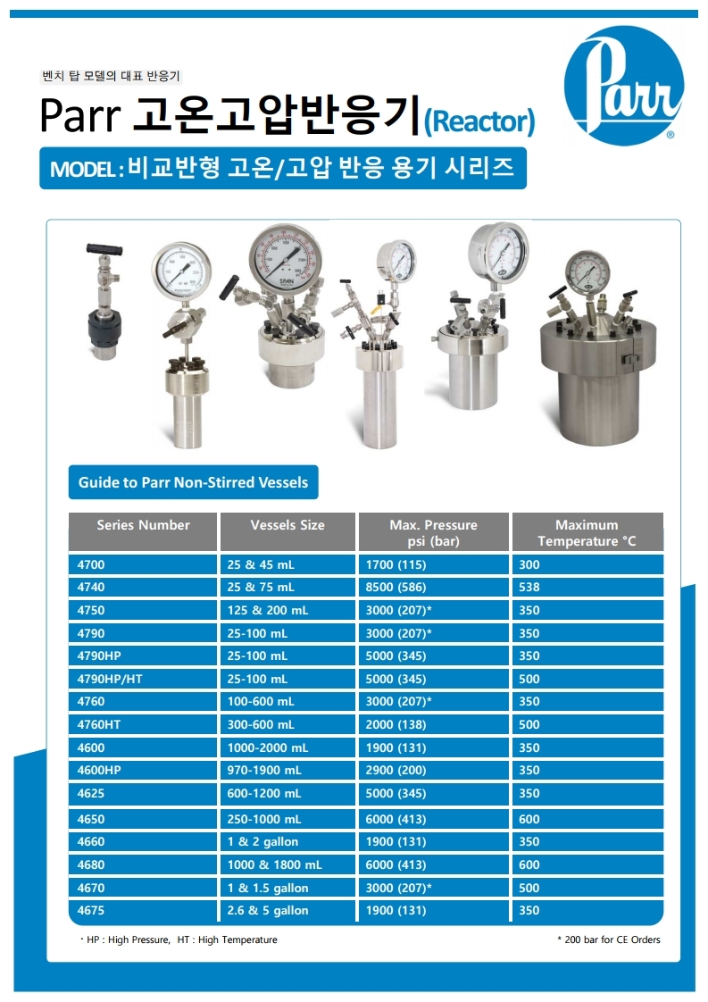 [Parr 반응기] Non-Stirred Pressure Vessels(비교반형 반응기) 비교반형 반응기 Size(mL) : 22 – 2000 실험실에서 사용하기 편리한 스타일, 크기 및 압력의 폭넓은 선택 가능. 메이커 : Parr 카달로그 및 제품 문의는 아래 메일로 연락을 주시기 바랍니다. 고객센터 : 1644-2519 info@hwashinbs.com 이전글 LAB750 FOR AXIAL PROBES 다음글 6725 Semi-Micro Calorimeter 목록 본문 이전글 LAB750 FOR AXIAL PROBES 다음글 6725 Semi-Micro Calorimeter 목록