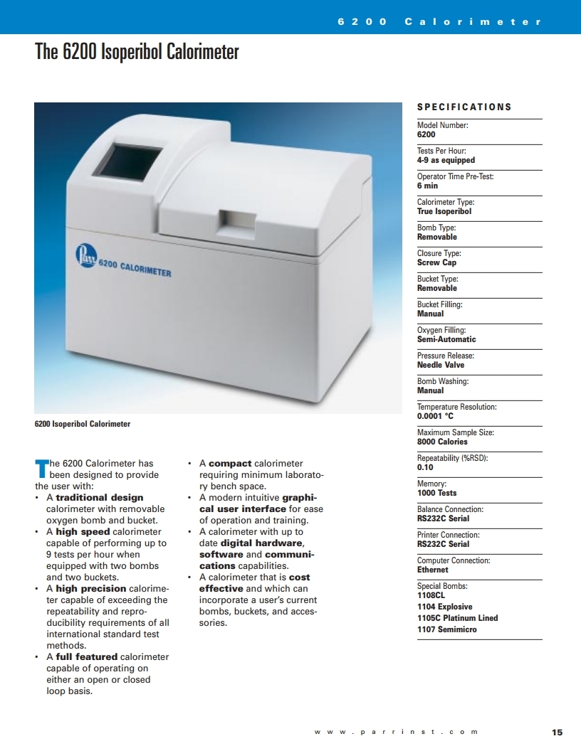 [열량계 & 반응기] 6200 Isoperibol Calorimeter 반자동 터치 스크린 방식의 Isoperibol Calorimeter 메이커 : Parr 카달로그 및 제품 문의는 아래 메일로 연락을 주시기 바랍니다. 고객센터 : 1644-2519 info@hwashinbs.com 이전글 6100 Compensated Jacket Calorimeter 다음글 [Metrohm] Petro Analyzer(NIR) 목록 본문 이전글 6100 Compensated Jacket Calorimeter 다음글 [Metrohm] Petro Analyzer(NIR) 목록