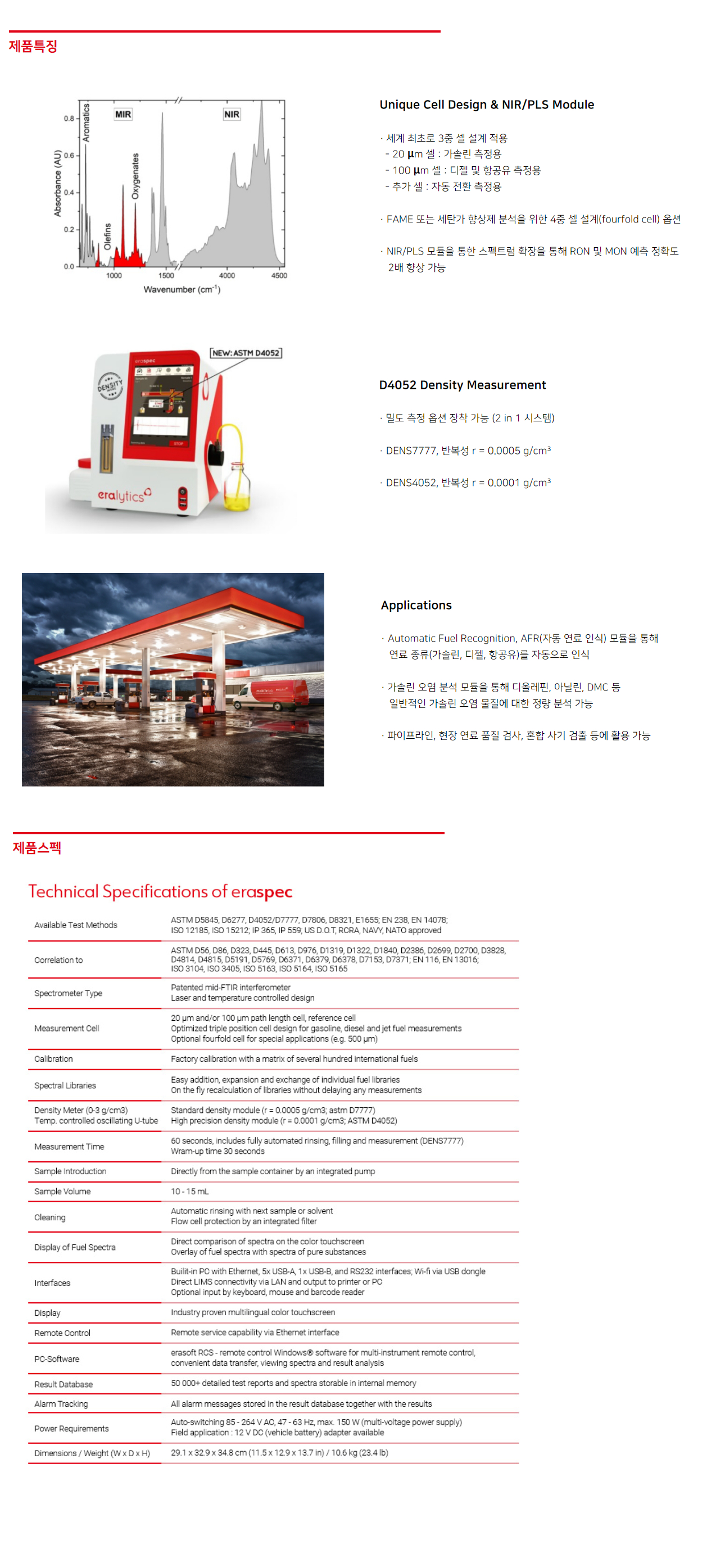 Eralytics사의 eraspec은 연료 종류에 관계없이 사용할 수 있는 최적의 연료 분석기로,