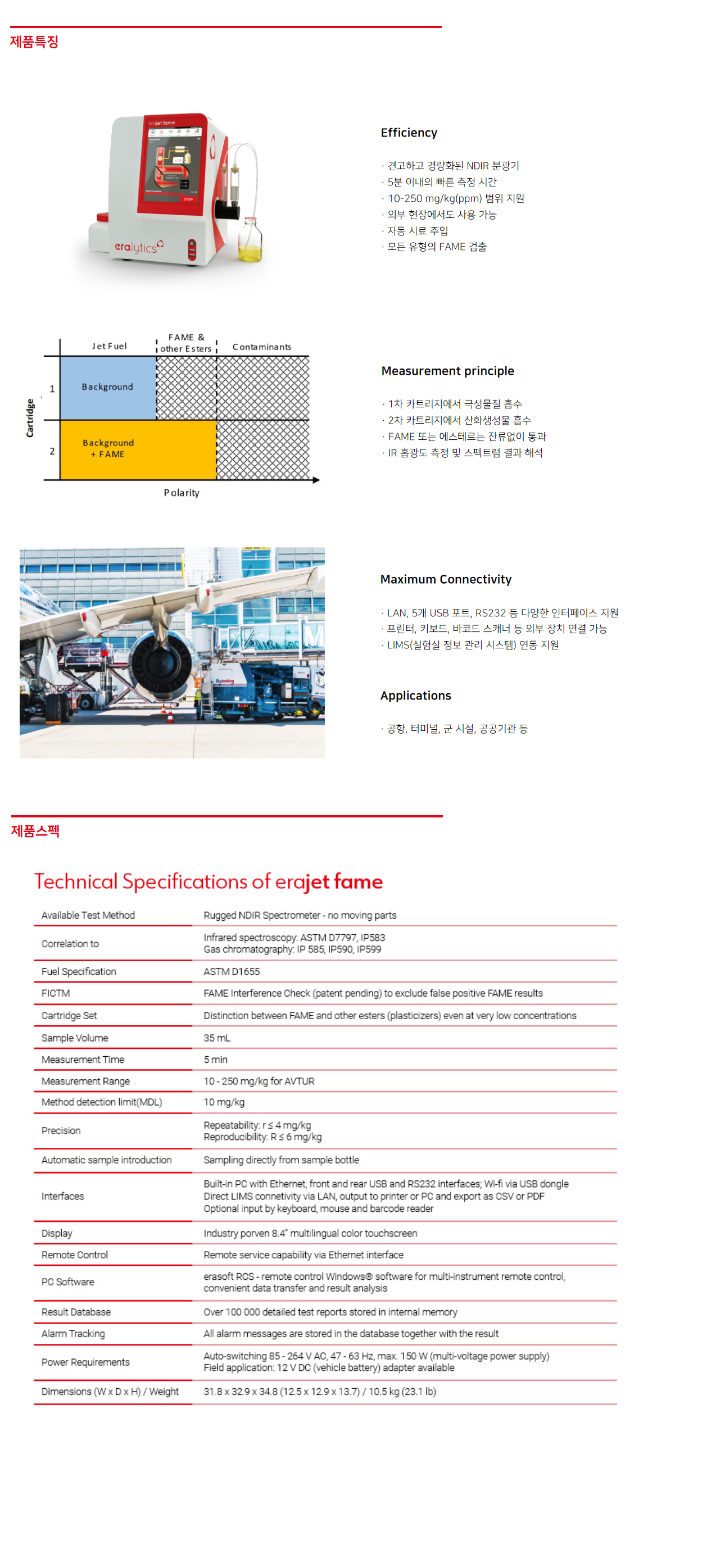 Eralytics사의 erajet FAME은 항공유의 FAME(fatty acid methyl esters) 분석기입니다.
