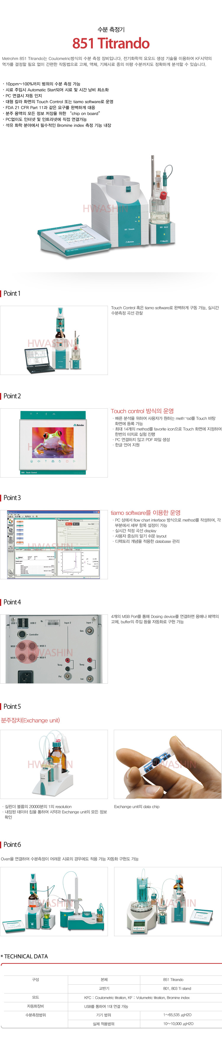 [KF 수분측정기] [Metrhom] 851 Titrando Metrohm 851 Titrando는 Coulometric방식의 수분 측정 장비입니다. 카달로그 및 제품 문의는 아래 메일로 연락을 주시기 바랍니다. 고객센터 : 1644-2519 info@hwashinbs.com 이전글 [Metrhom] OMNIS 수분측정기 다음글 [Metrhom] 901 Titrando 목록 본문 이전글 [Metrhom] OMNIS 수분측정기 다음글 [Metrhom] 901 Titrando 목록