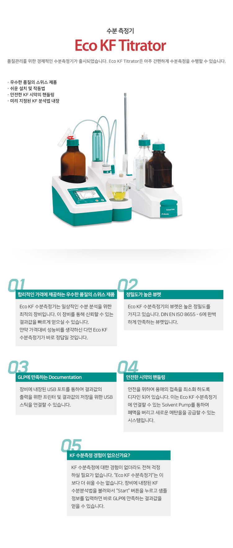[KF 수분측정기] [Metrhom] Eco KF Titrator 품질관리를 위한 경제적인 수분측정기가 출시되었습니다. Eco KF Titrator은 아주 간편하게 수분측정을 수행할 수 있습니다. 카달로그 및 제품 문의는 아래 메일로 연락을 주시기 바랍니다. 고객센터 : 1644-2519 info@hwashinbs.com 이전글 781 pH & Ion meter 다음글 [Metrhom] 917 Coulometer 목록 본문 이전글 781 pH & Ion meter 다음글 [Metrhom] 917 Coulometer 목록