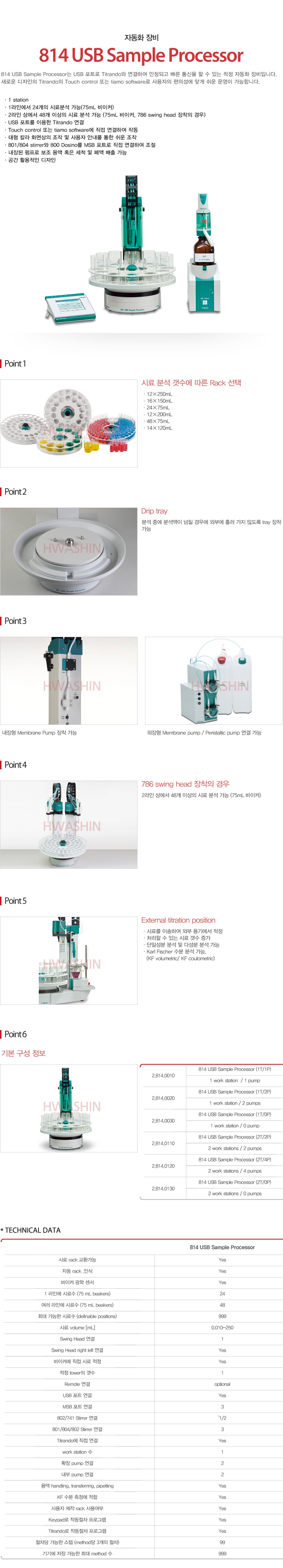 [전위차적정기] [Metrohm] 814 USB Sample Processor 814 USB Sample Processor는 USB 포트로 Titrando와 연결하여 안정되고 빠른 통신을 할 수 있는 적정 자동화 장비입니다 카달로그 및 제품 문의는 아래 메일로 연락을 주시기 바랍니다. 고객센터 : 1644-2519 info@hwashinbs.com 이전글 [Metrohm] 902 STAT Titrando 다음글 [Metrohm]815 Robotic USB SP 검색 목록 본문 이전글 [Metrohm] 902 STAT Titrando 다음글 [Metrohm]815 Robotic USB SP 검색 목록