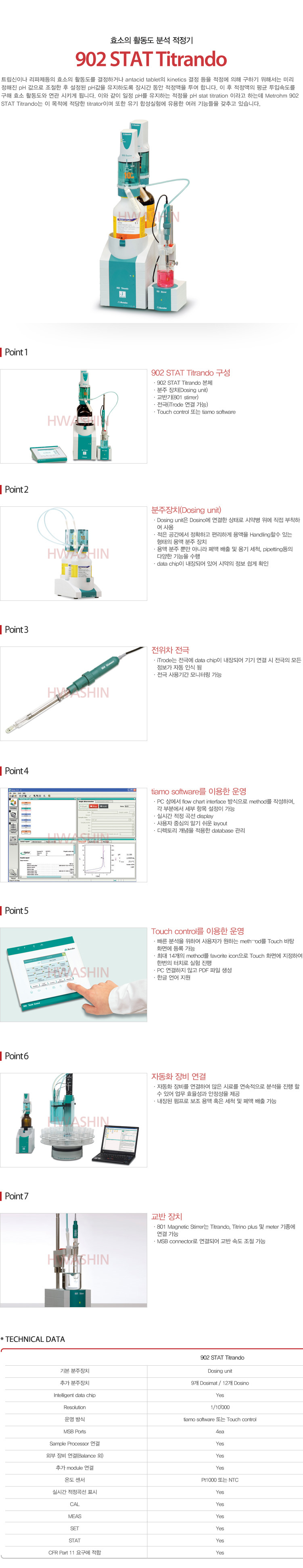 [전위차적정기] [Metrohm] 902 STAT Titrando 902 STAT Titrando는 트립신이나 리파제등의 효소의 활동도 분석하기 위한 적정기이며 또한 유기 합성실험에 유용한 여러 기능들을 갖추고 있습니다. 카달로그 및 제품 문의는 아래 메일로 연락을 주시기 바랍니다. 고객센터 : 1644-2519 info@hwashinbs.com 이전글 [Metrohm] 888 Titrando 다음글 [Metrohm] 814 USB Sample Processor 검색 목록 본문 이전글 [Metrohm] 888 Titrando 다음글 [Metrohm] 814 USB Sample Processor 검색 목록