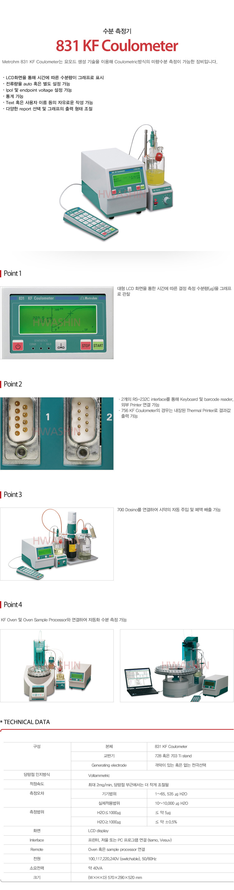 [KF 수분측정기] [Metrhom] 831 KF Coulometer Metrohm 831 KF Coulometer는 요오드 생성 기술을 이용해 Coulometric방식의 미량수분 측정이 가능한 장비입니다. 카달로그 및 제품 문의는 아래 메일로 연락을 주시기 바랍니다. 고객센터 : 1644-2519 info@hwashinbs.com 이전글 [Metrhom] 890 Titrando 다음글 [Metrhom] 899 Coulometer 검색 목록 본문 이전글 [Metrhom] 890 Titrando 다음글 [Metrhom] 899 Coulometer 검색 목록