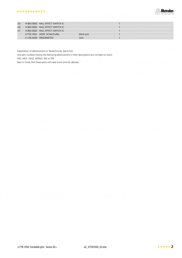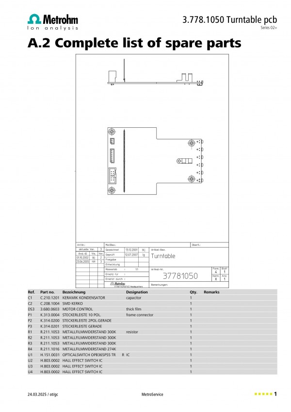 METROHM - 3.778.1050 Complete List of spare parts 페이지 정보 작성자최고관리자 작성일25-06-17 09:58 조회184회 댓글0건 관련링크 다음글 화신비에스 종합카탈로그 다운로드 목록 본문 3.778.1050 Turntable pcb 댓글 목록 등록된 댓글이 없습니다. 댓글등록 다음글 화신비에스 종합카탈로그 다운로드 목록